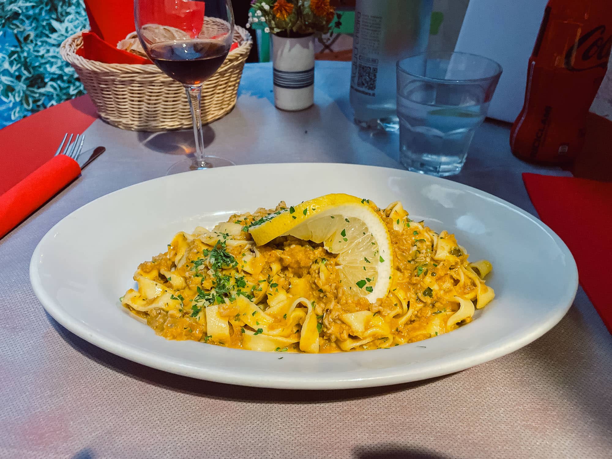 - Pappardelle al ragù di cinghiale – a pasta made with flatter noodles and wild boar.