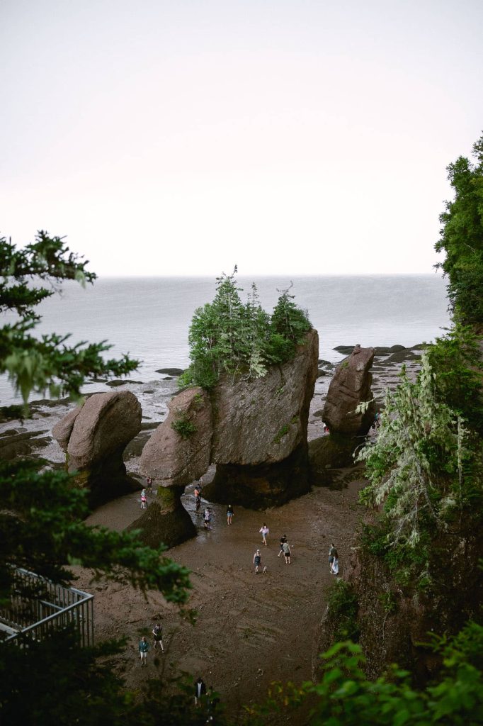 The main place we wanted to spend time at was Hopewell Rocks Provincial Park. We probably saw a picture or video somewhere and added it to our road trip list! The rocks are known as sea stacks and they were formed by tidal erosion. If you go at high tide, you can actually kayak around them and then at low tide you can walk out to them.