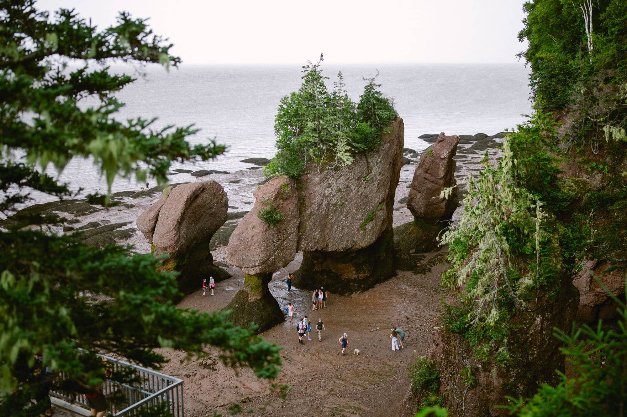 The main place we wanted to spend time at was Hopewell Rocks Provincial Park. We probably saw a picture or video somewhere and added it to our road trip list! The rocks are known as sea stacks and they were formed by tidal erosion. If you go at high tide, you can actually kayak around them and then at low tide you can walk out to them.